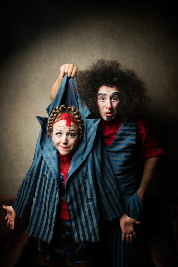 Le public, enfants et adultes, est témoin et complice de cette comédie d’embrouilles qui amène les personnages à partager leurs émotions sans dissimulation. Le grotesque et le subtil s’embrassent pour donner vie à une pièce de cirque de rue mettant en scène deux personnages aussi attachants qu’inoubliables.