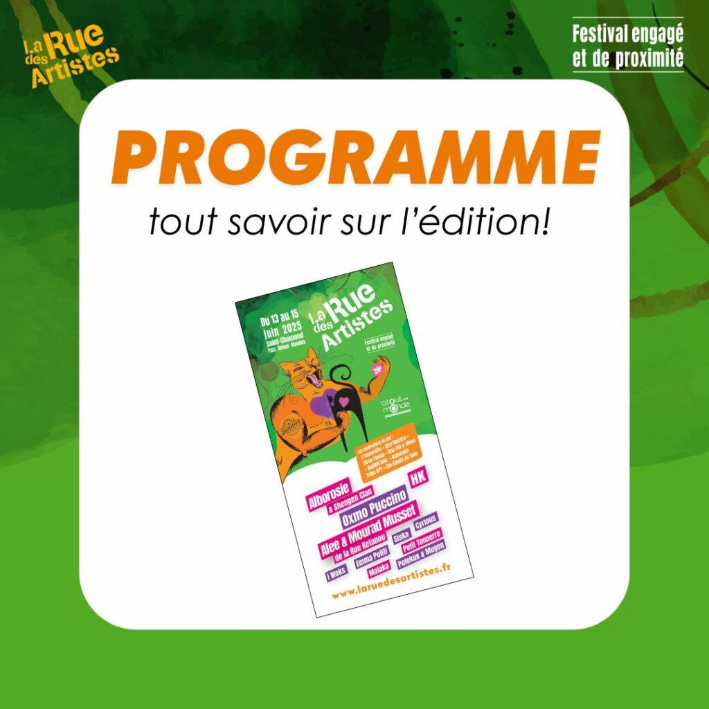 15 mai 2025 Le Programme est arrivé ! 📝 By Cynthia 0 Comments Actualités L𝗲 𝗽𝗿𝗼𝗴𝗿𝗮𝗺𝗺𝗲 est enfin arrivé Pour tout savoir sur l’édition 2025, on ne peut que vous conseiller de feuilleter le programme du festival Disponible sur notre site Internet: https://cutt.ly/programme2025 & Dans une poignée de jours dans les lieux et commerces des alentours La Rue des Artistes, 𝘧𝘦𝘴𝘵𝘪𝘷𝘢𝘭 𝘦𝘯𝘨𝘢𝘨𝘦́ 𝘦𝘵 𝘥𝘦 𝘱𝘳𝘰𝘹𝘪𝘮𝘪𝘵𝘦́ https://cutt.ly/MeStlvKH Share